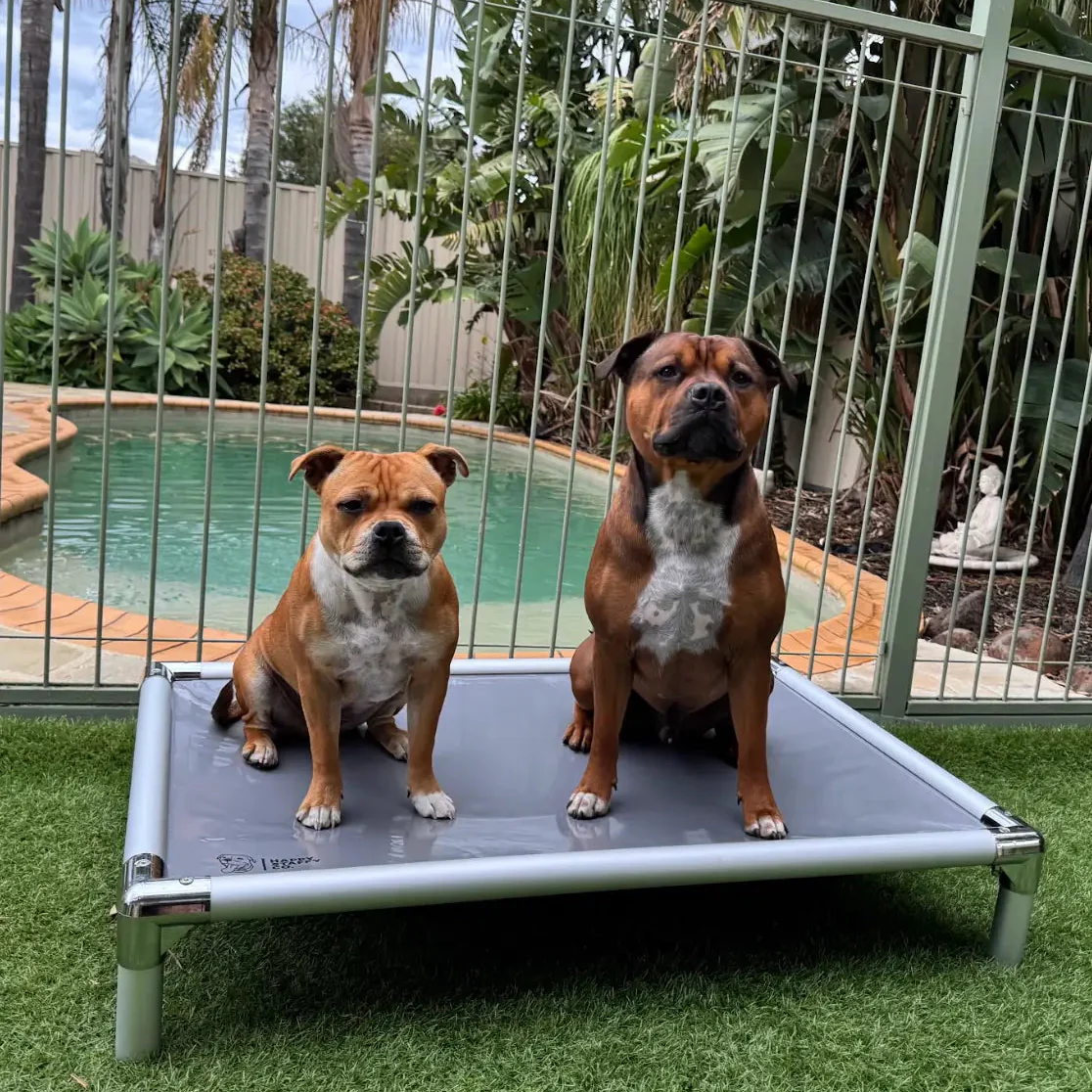 Made with reinforced anti-rust aluminium framing and our ChewGuard™ tear-resistant, waterproof fabric, this isn’t just another chew-resistant bed—it’s the ultimate outdoor bed for dogs that demolish everything. Whether your dog’s a digger, a shredder, or a relentless chewer, this bed stands up to it all while keeping them comfortable.